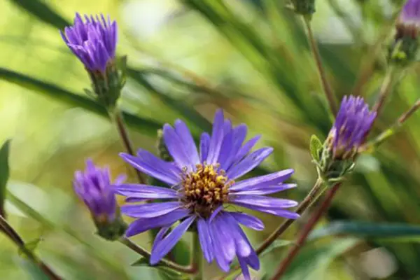 Asters er i Daisy -familien, og mens nogle blomster i foråret, de fleste blomster i sensommeren og efteråret, deraf deres fælles navn Michaelmas Daisy. Eurebia Macrophylla producerer store, hjerteformede blade og violette farvede blomster fra august til oktober. Det gør en velkommen flash af farve, når andre blomster begynder at falme, og er en vigtig kilde til nektar og pollen til sent-flyvende insekter.