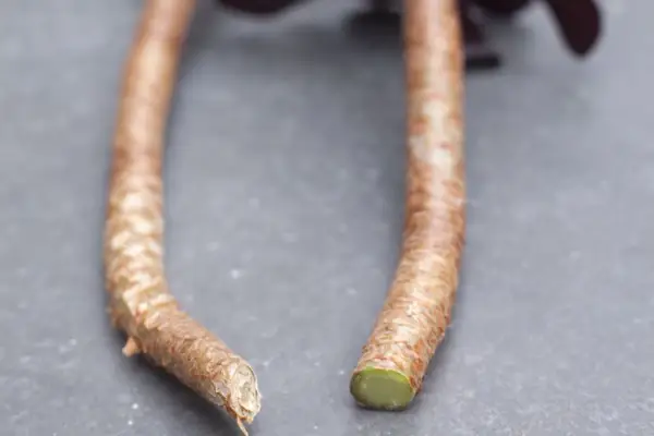 Placer stiklingerne på deres side, og lad dem et sted tørre og varme i et par dage, indtil såret har kaldt (se klipning til venstre for billedet). Dette vil reducere chancen for, at den skære udvikler rådne senere.