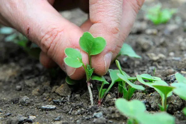 Udtynding af radise frøplanter