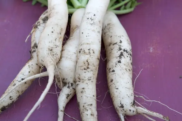 Spis sommerradiser som unge rødder friske fra plukning, men vinterradiser som Mooli kan efterlades i jorden for at høste efter behov eller opbevares på et køligt tørt sted.