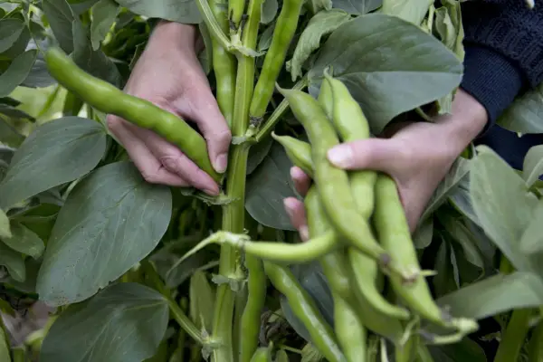 Bred bønnes, Viola Bean , er lette at dyrke, med en tidlig afgrøde af lækre, mør bønner, der er egnede til at bruge i den første af sommersalaterne.